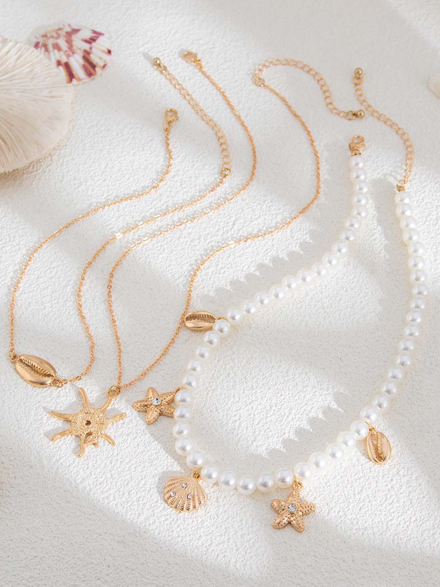 Design: The set includes necklaces with delicate imitation pearls, starfish, and shell pendants for a coastal feel. Each piece adds a touch of vintage charm to your outfit, and the starfish and shell details symbolize beach vibes and nautical elegance.