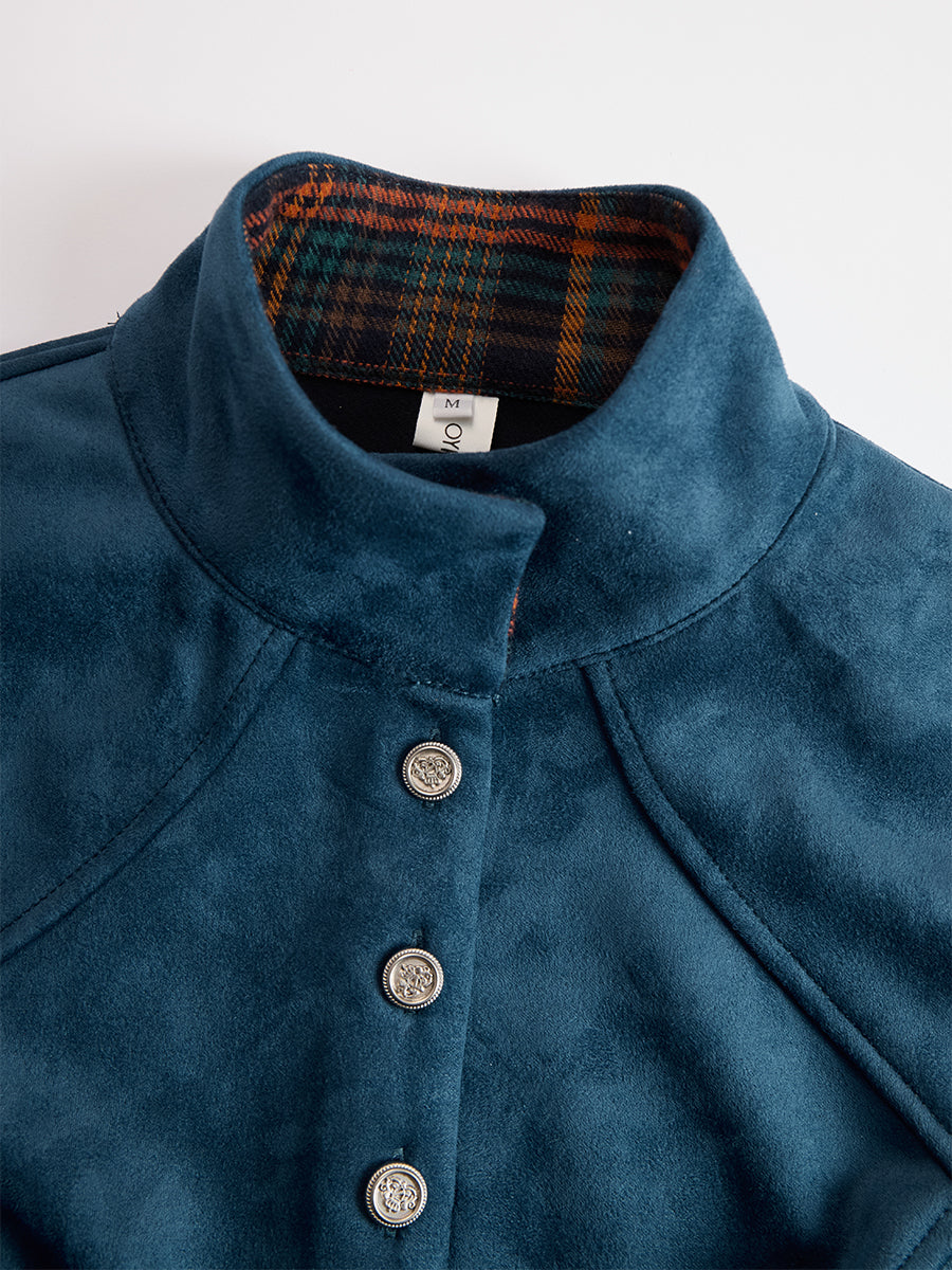 This vintage ethnic-inspired belted blue faux suede plaid maxi skirt perfectly blends retro charm with modern elegance. Crafted with exquisite details and a striking blue plaid pattern, this dress is timeless and versatile. The faux suede fabric adds a luxurious touch, giving the piece an elegant drape and a soft, comfortable feel.