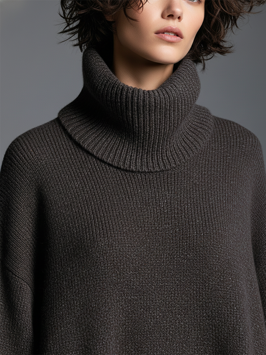 High-end Fashionable Loose Neckline Brown Knitted Maxi Dress