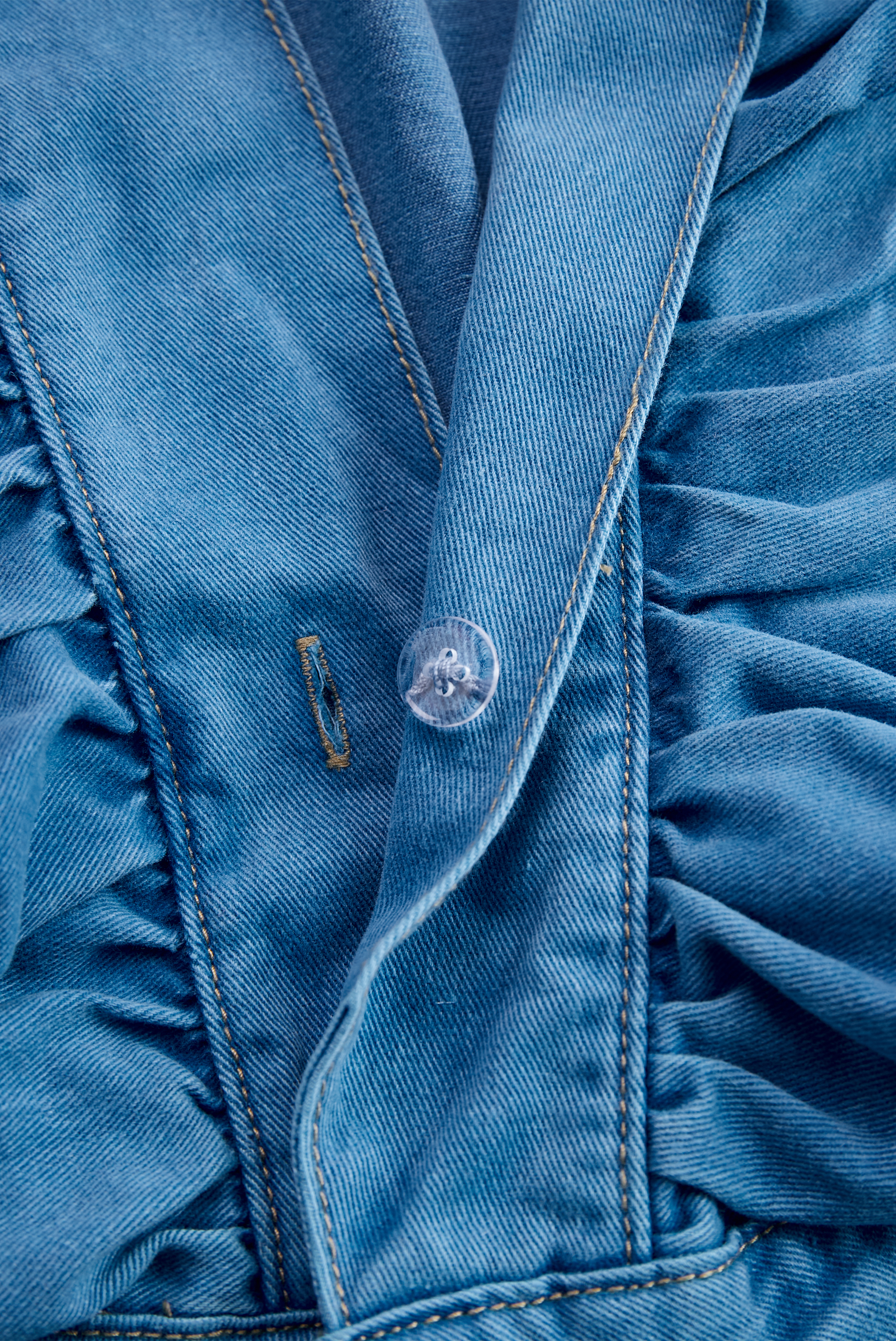 • 【24-hour shipping out】Fashionable Ruffle Strap Denim Shorts Jumpsuit