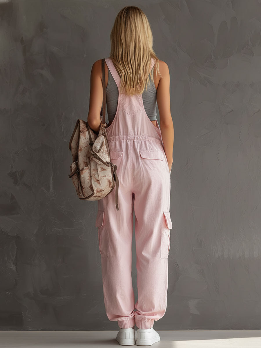 These fashionable retro casual pink wide-leg overalls are a delightful nod to vintage style with a modern twist. Crafted from a soft, durable fabric, they offer both comfort and durability, making them perfect for everyday wear. The wide-leg design provides a relaxed fit that allows for easy movement, while the adjustable shoulder straps ensure a customizable fit. The overalls feature classic elements such as a front bib pocket and side button closures, enhancing their retro appeal while maintaining practicality.