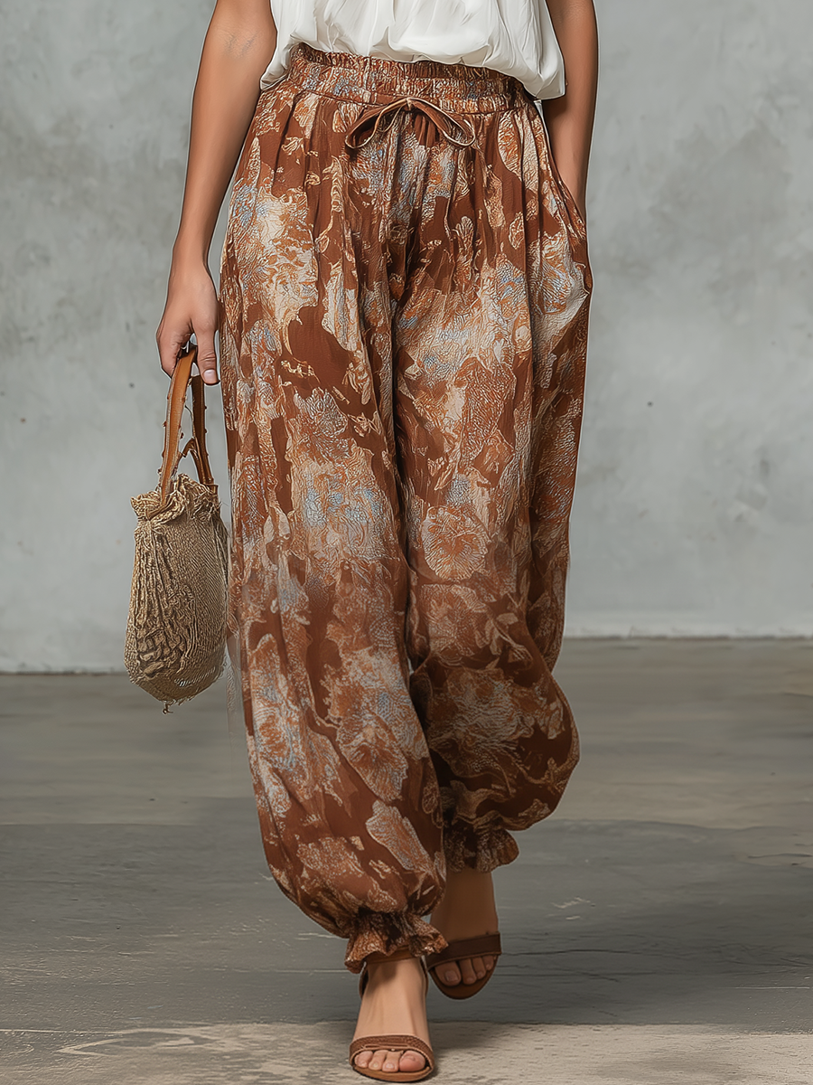 • Retro-style Casual Sleeveless A-line Top Paired With Printed Chiffon Wide-leg Pants Set