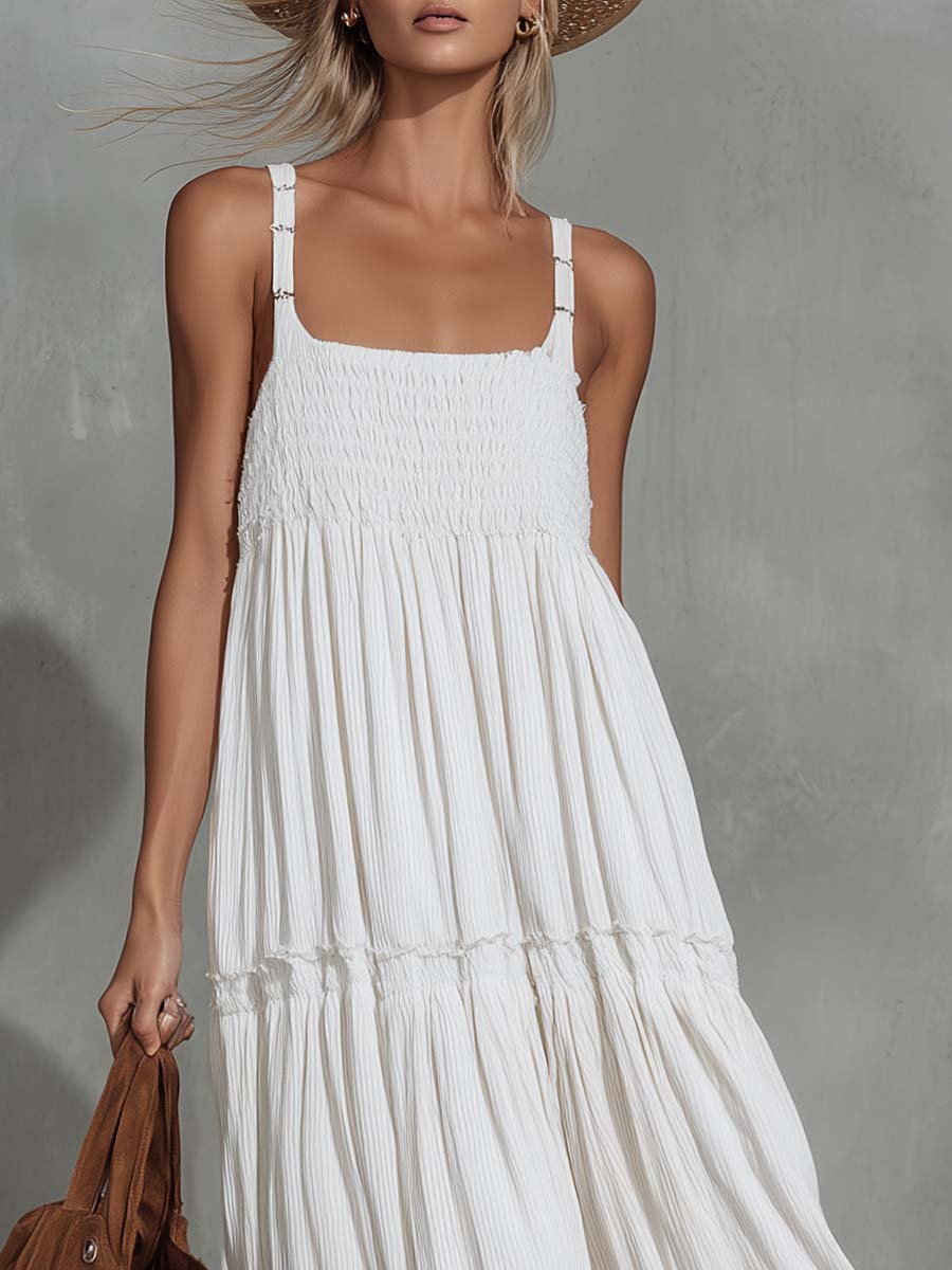 Effortlessly elegant, this Retro Vacation Western White Maxi Dress blends breathable cotton-linen comfort with a relaxed, Western-inspired silhouette. The lightweight, airy fabric and slim straps create a cool, sun-ready look that moves beautifully with each step. Designed for warm-weather getaways and everyday wear, its timeless white hue and flowing maxi length deliver an understated vintage charm.