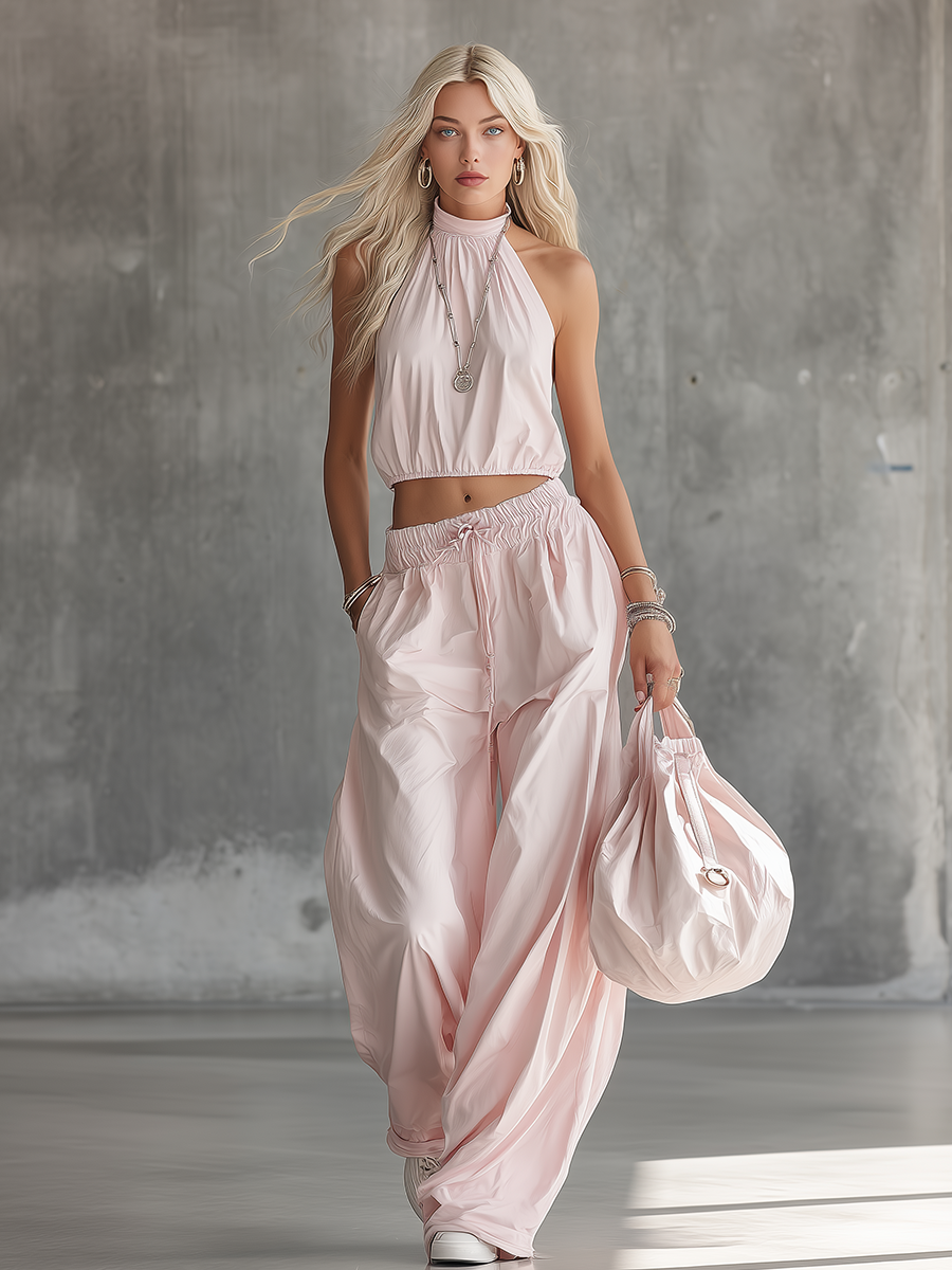 Refined and versatile, this elegant round-neck sleeveless set pairs an A-line top with coordinating trousers for a modern, pulled-together look. The softly flared top skims the body from the shoulders to the hip for flattering, easy movement, while the trousers offer a clean, tailored silhouette that balances comfort with polish. Minimal seaming and a smooth finish make the set ideal for mixing into any wardrobe—wear both pieces together for instant sophistication or separate them for multiple outfit options.