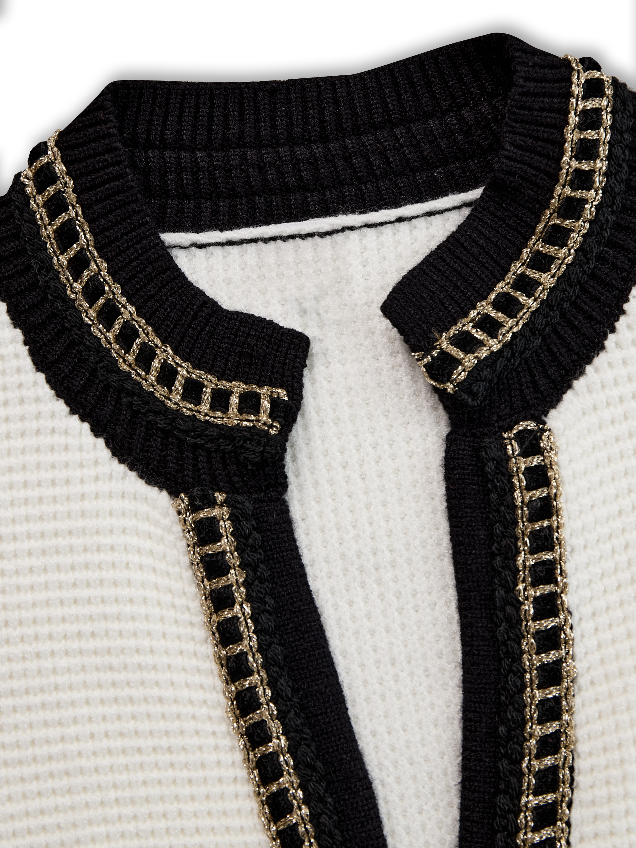2.Design:Stand collar, long sleeves, decorative trim, pleated skirt