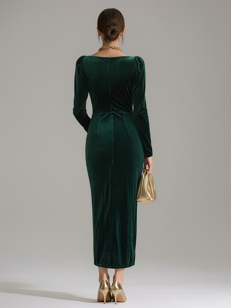 This dress transitions effortlessly from formal gatherings to intimate evenings, thanks to its versatile elegance. Pair it with strappy satin heels and a clutch for a black-tie event, or layer it with a tailored wool blazer and ankle boots for a refined daytime affair. The velvet’s inherent richness elevates even minimal styling.