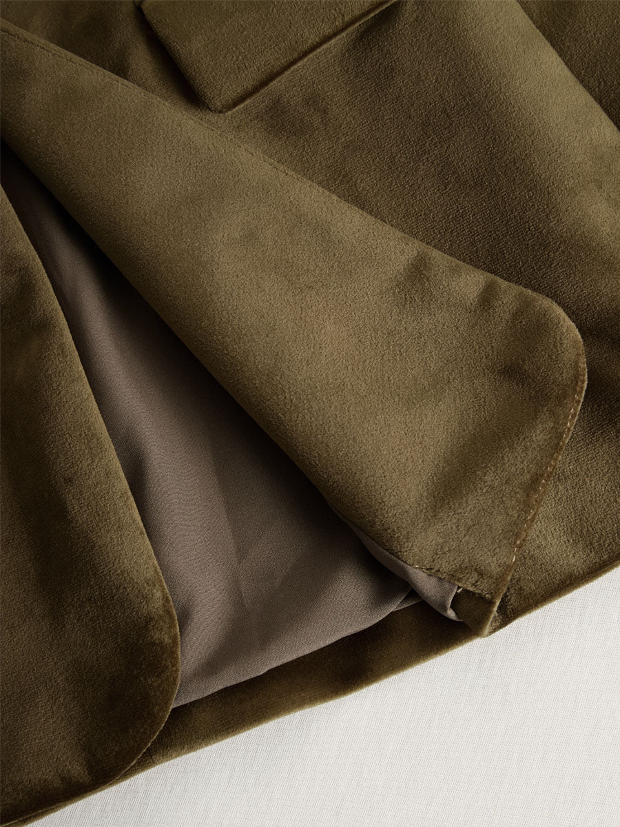 • Solid Color Lapel Ruffled Single-breasted Velvet Blazer