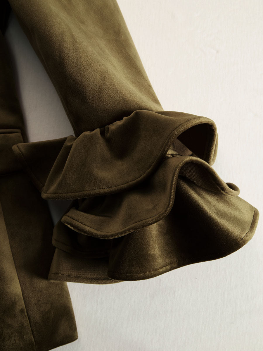 Solid Color Lapel Ruffled Single-breasted Velvet Blazer