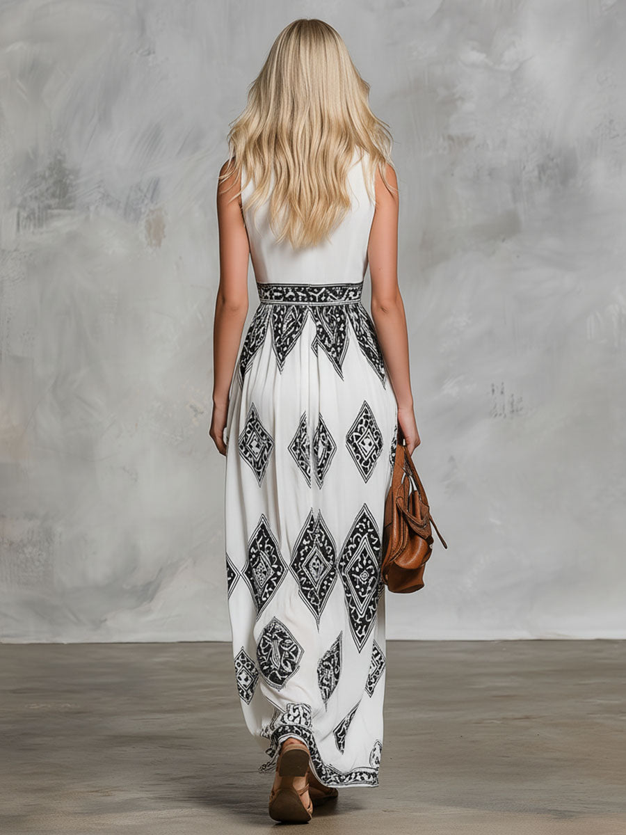 2.Design:Ethnic print, V-neck, sleeveless