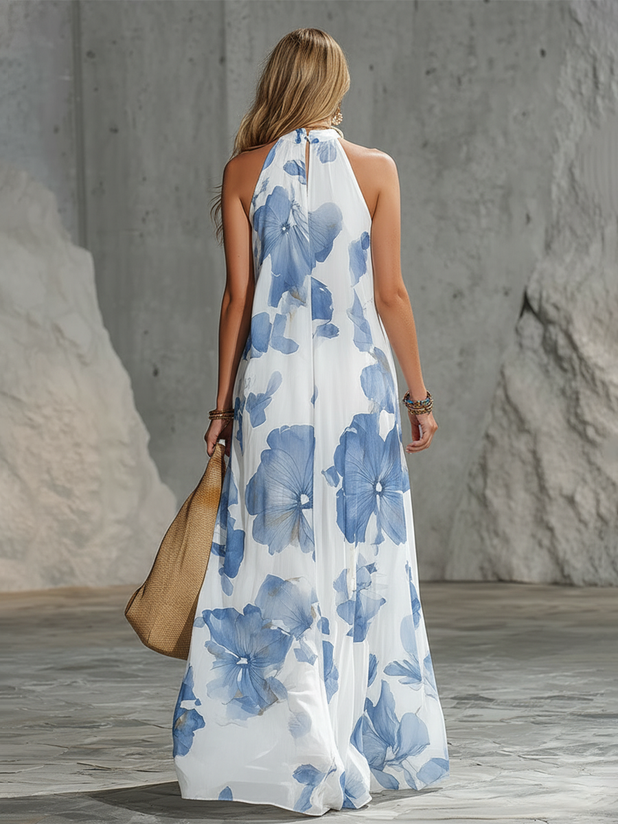 2.Design: Halter-neck, sleeveless, oversized floral print