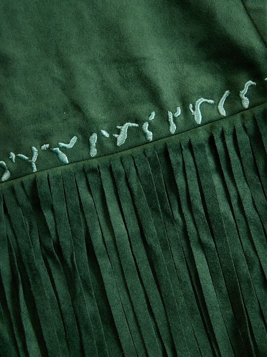 The Semi-High Neck Off-the-Shoulder Fringed Faux Suede Long-Sleeved Mini Dress captures a distinctive mix of modern edge and bohemian allure. Crafted from soft faux suede, it features a semi-high neckline that contrasts beautifully with its off-the-shoulder design. Cascading fringe details accentuate movement and add playful texture, while the fitted silhouette enhances the figure. Ideal for statement-making occasions, this piece pairs perfectly with heeled boots and bold accessories for a confident, fashion-forward look.