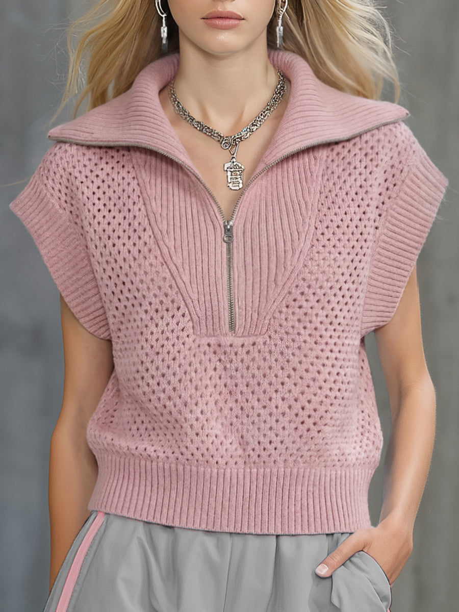 2.Design: Zip-up collar, sleeveless, broad shoulders, contrasting stripes