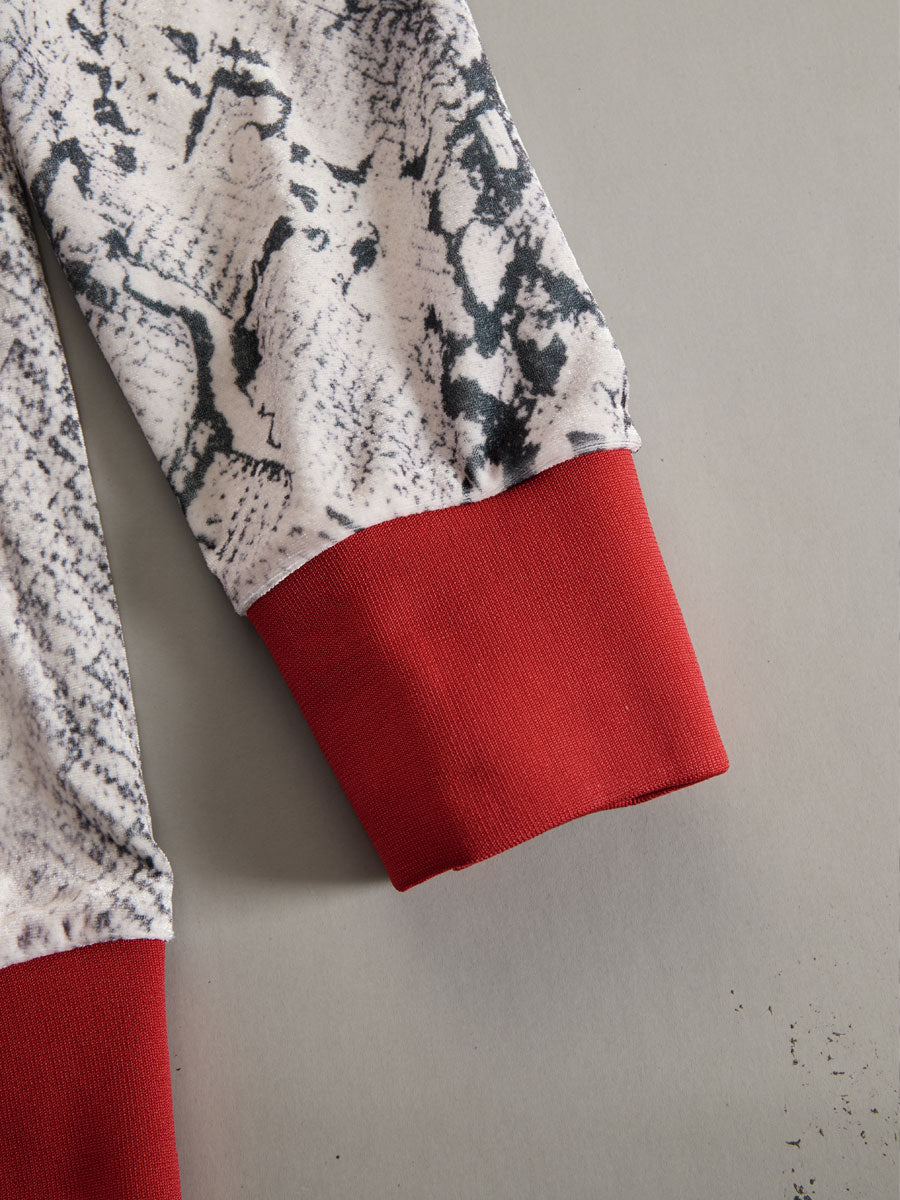 This casual sporty retro snakeskin gray velvet hooded sweatshirt and wide-leg set is a unique blend of edgy style and cozy comfort. The set features a luxurious gray velvet fabric, offering a plush feel and a touch of sophistication. The standout element is the subtle snakeskin pattern, which adds an unexpected twist to the classic sporty ensemble, infusing it with retro flair.