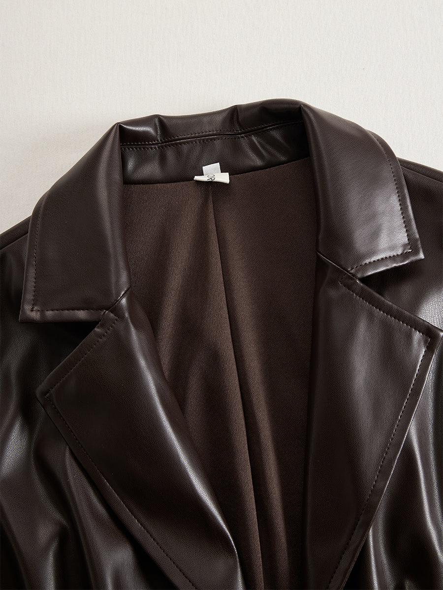 This vintage-inspired, high-end brown faux leather and lace long-sleeved maxi dress seamlessly blends vintage charm with modern style for a stunning look. Exquisite faux leather stitching and lace details enhance the elegance, making it an ideal piece for those seeking a unique and fashionable style.