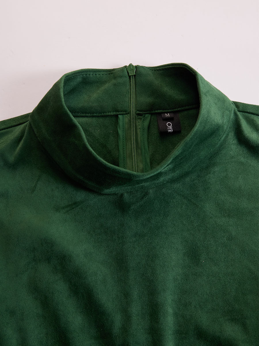 The Semi-High Neck Off-the-Shoulder Fringed Faux Suede Long-Sleeved Mini Dress captures a distinctive mix of modern edge and bohemian allure. Crafted from soft faux suede, it features a semi-high neckline that contrasts beautifully with its off-the-shoulder design. Cascading fringe details accentuate movement and add playful texture, while the fitted silhouette enhances the figure. Ideal for statement-making occasions, this piece pairs perfectly with heeled boots and bold accessories for a confident, fashion-forward look.