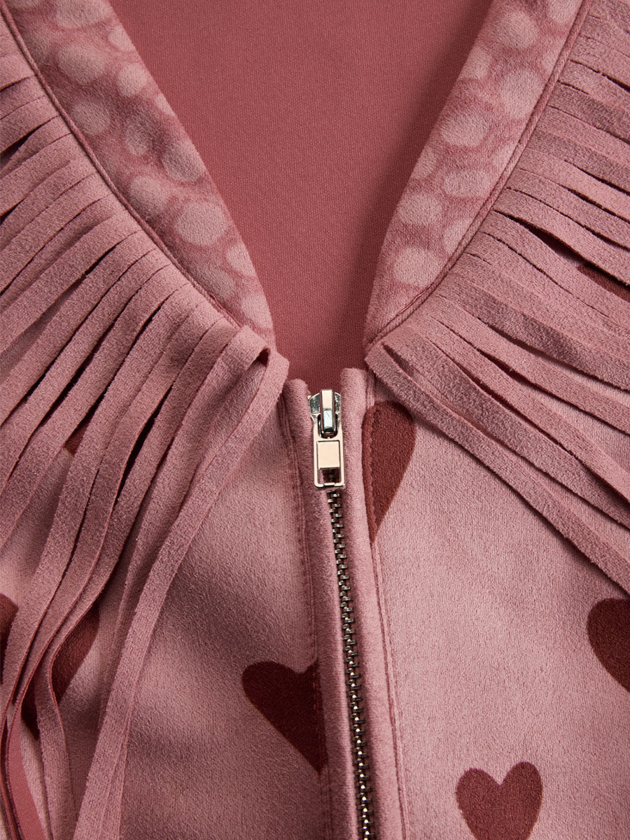 • Western Style V-neck Fringed Heart Print Faux Suede Long-sleeved Mini Dress